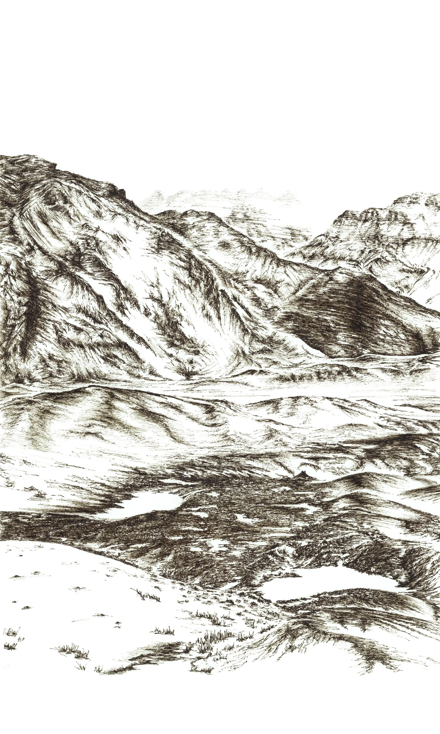 In the Midst of Nothingness; Eyjafjarðarsveit | Felt tip pen & pastel on Canson paper | 84cm x 119cm